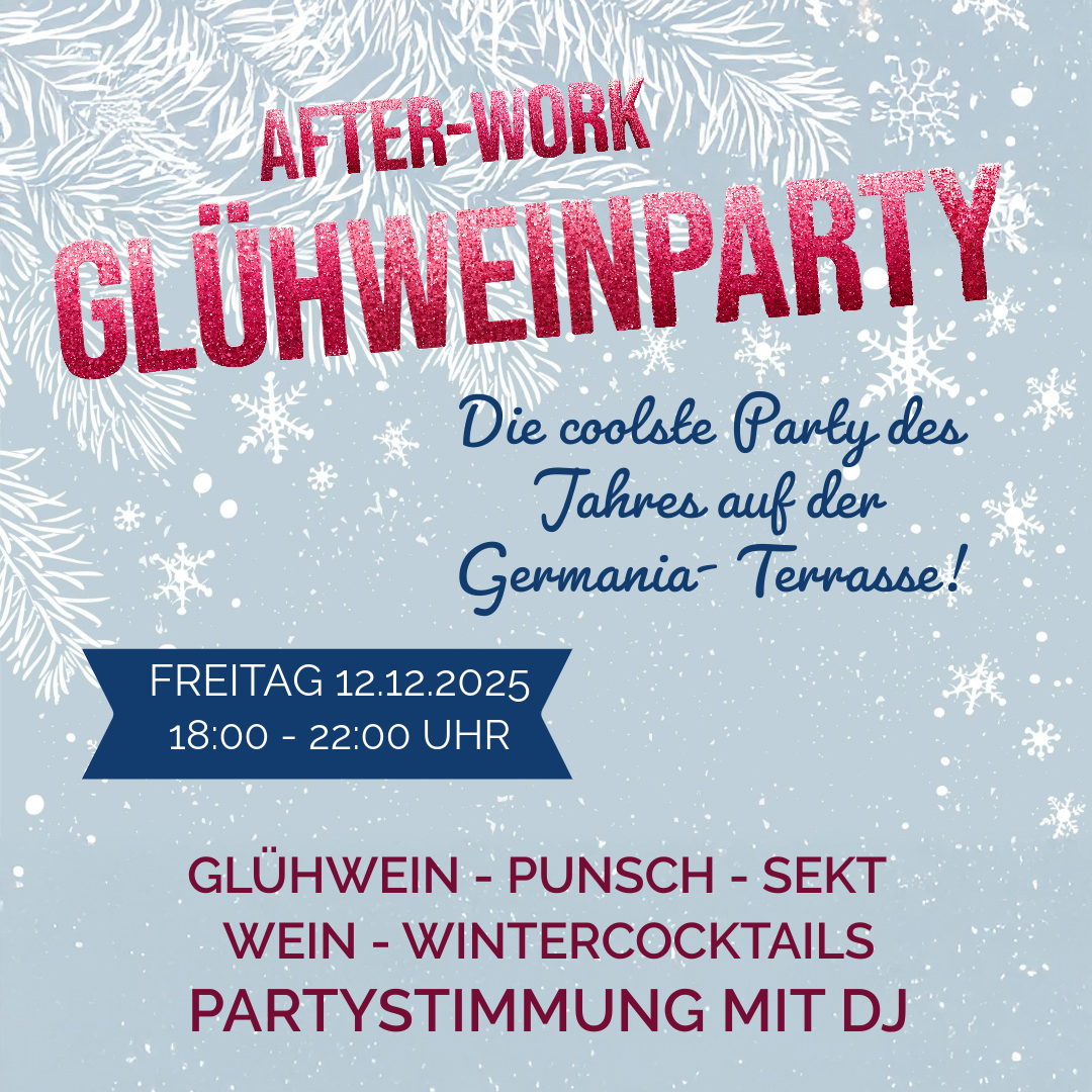 Unsere legendäre Afterwork Glühweinparty ist back auf der Hotelterrasse vom Hotel Germania – wo Winterfeeling auf Partyvibes trifft!